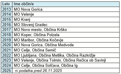 Table PR24-2: The most active Slovenian municipalities within EMW, 2013-2025