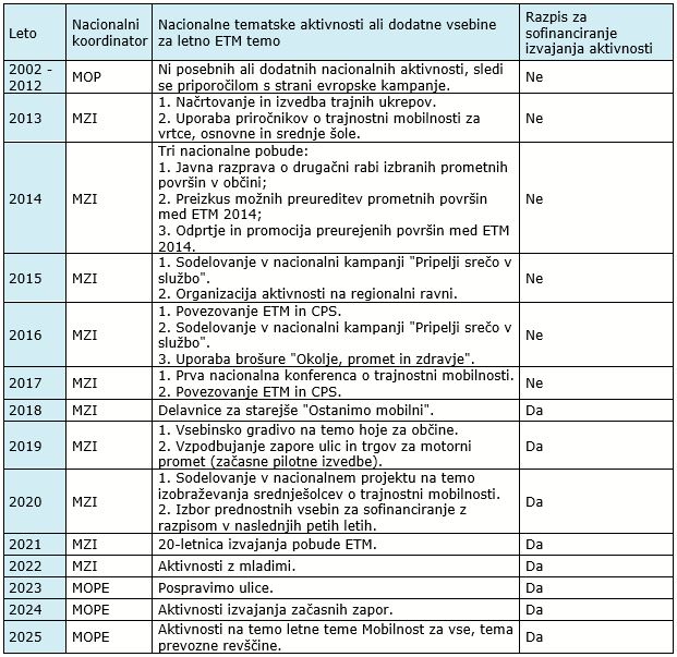 MZI, 2021. Več življenja na naših ulicah, višja kakovost bivanja v naših skupnostih. Dvajset let Evropskega tedna mobilnosti v Sloveniji; Zaključna poročila izvedbe podpornih aktivnosti ETM (2013 – 2023, različni avtorji, naročnika MZI in MOPE); Zapisniki o ocenjevanju vlog za JR ETM (2020-2022); MOPE, 2025. Interno gradivo JR ETM. (2025)