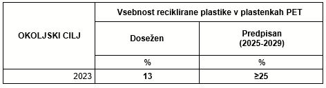 Table OD31-8: Achieved and mandatory environmental target for recycled plastic content in PET bottles, Slovenia, 2023