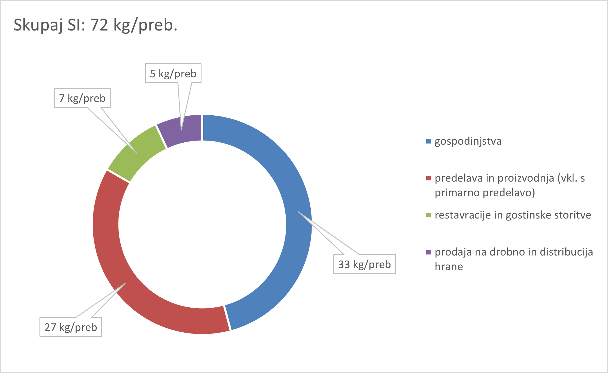 gospodinjstva [kg/preb] restavracije in gostinske storitve [kg/preb] prodaja na drobno in distribucija hrane [kg/preb] predelava in proizvodnja (vkl. s primarno predelavo) [kg/preb] gospodinjstva [%] restavracije in gostinske storitve [%] prodaja na drobno in distribucija hrane [%] predelava in proizvodnja (vkl. s primarno predelavo) [%]